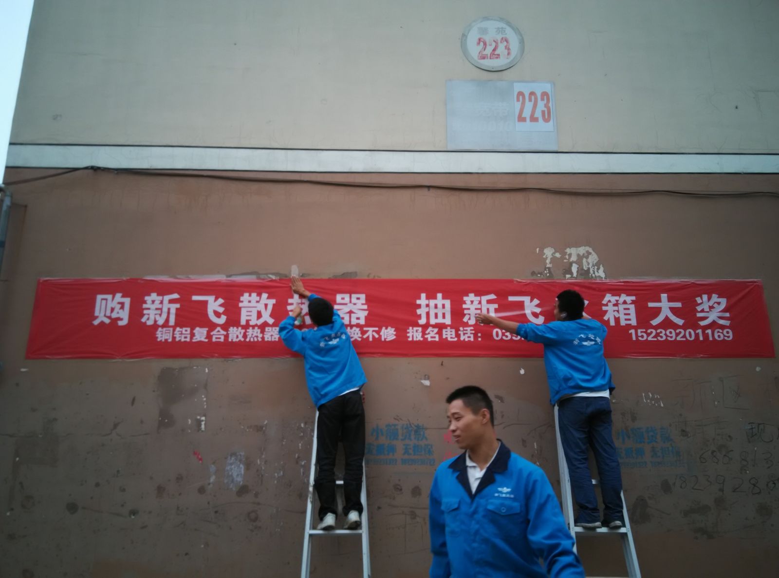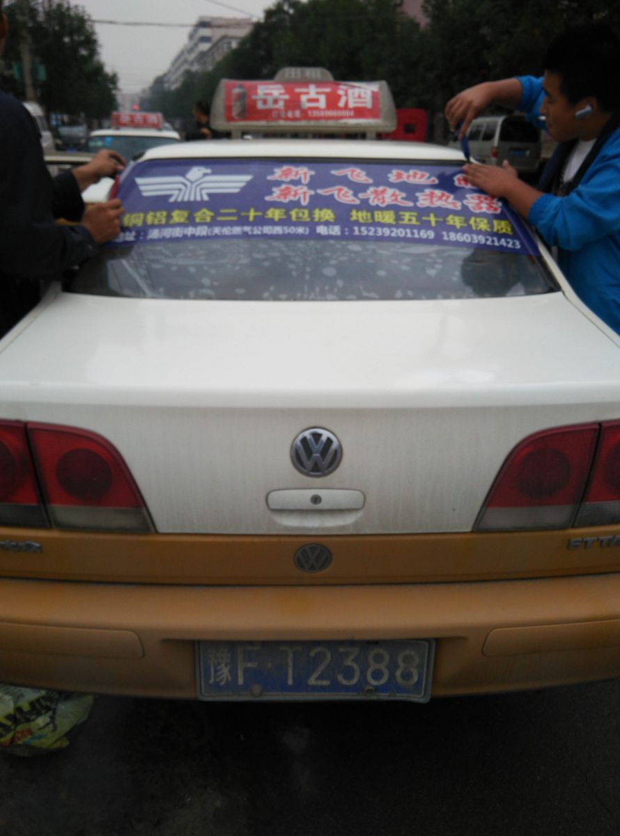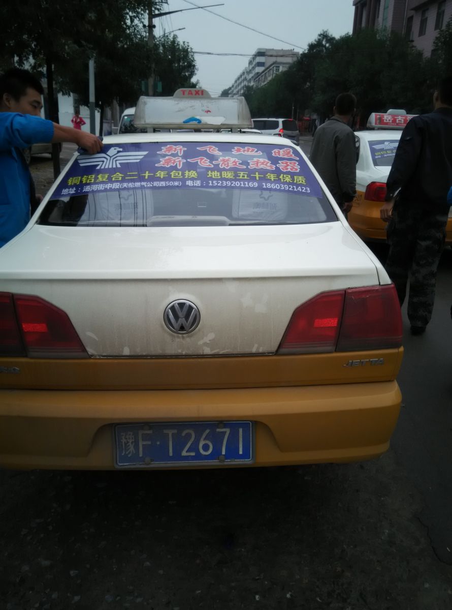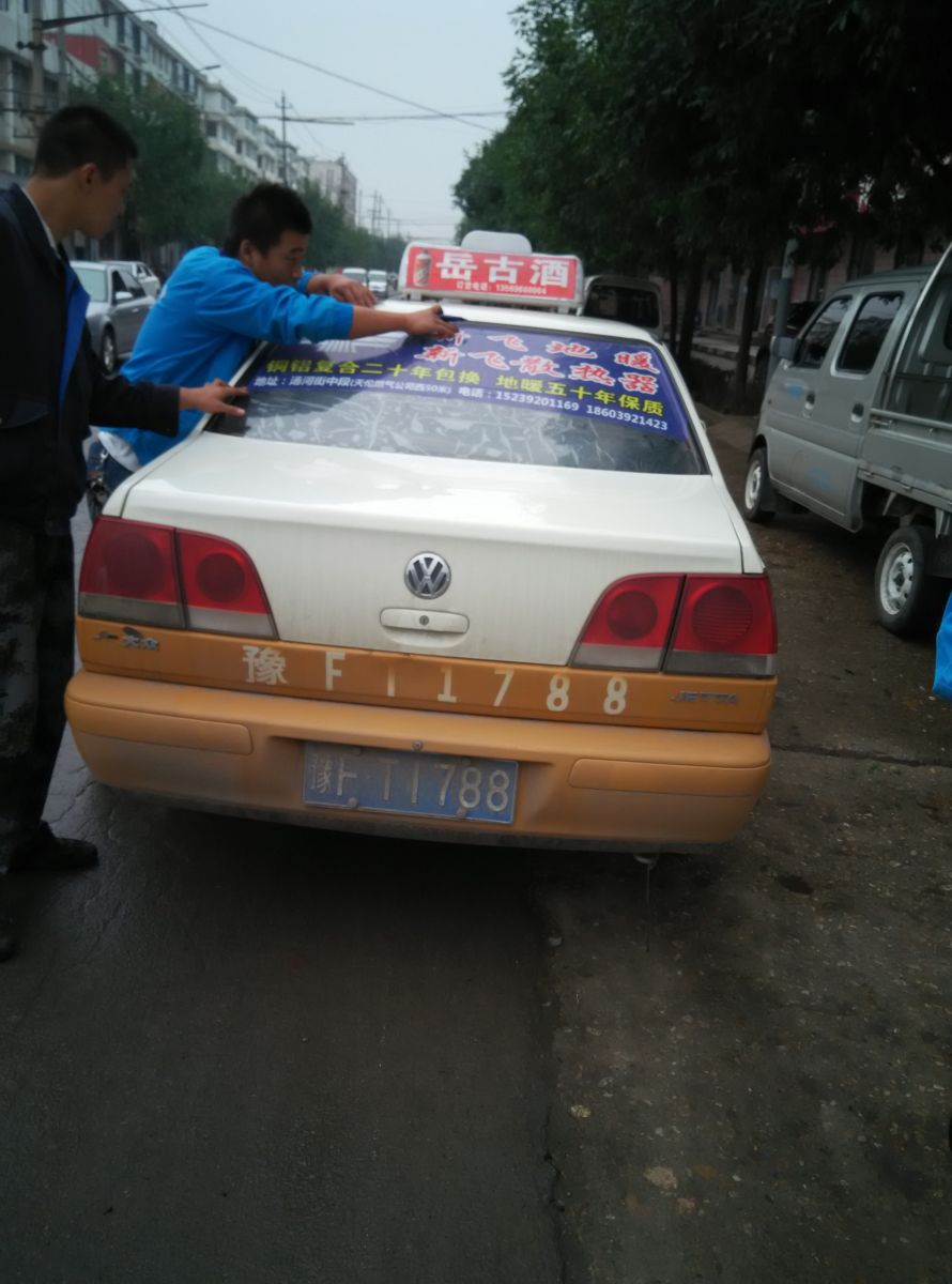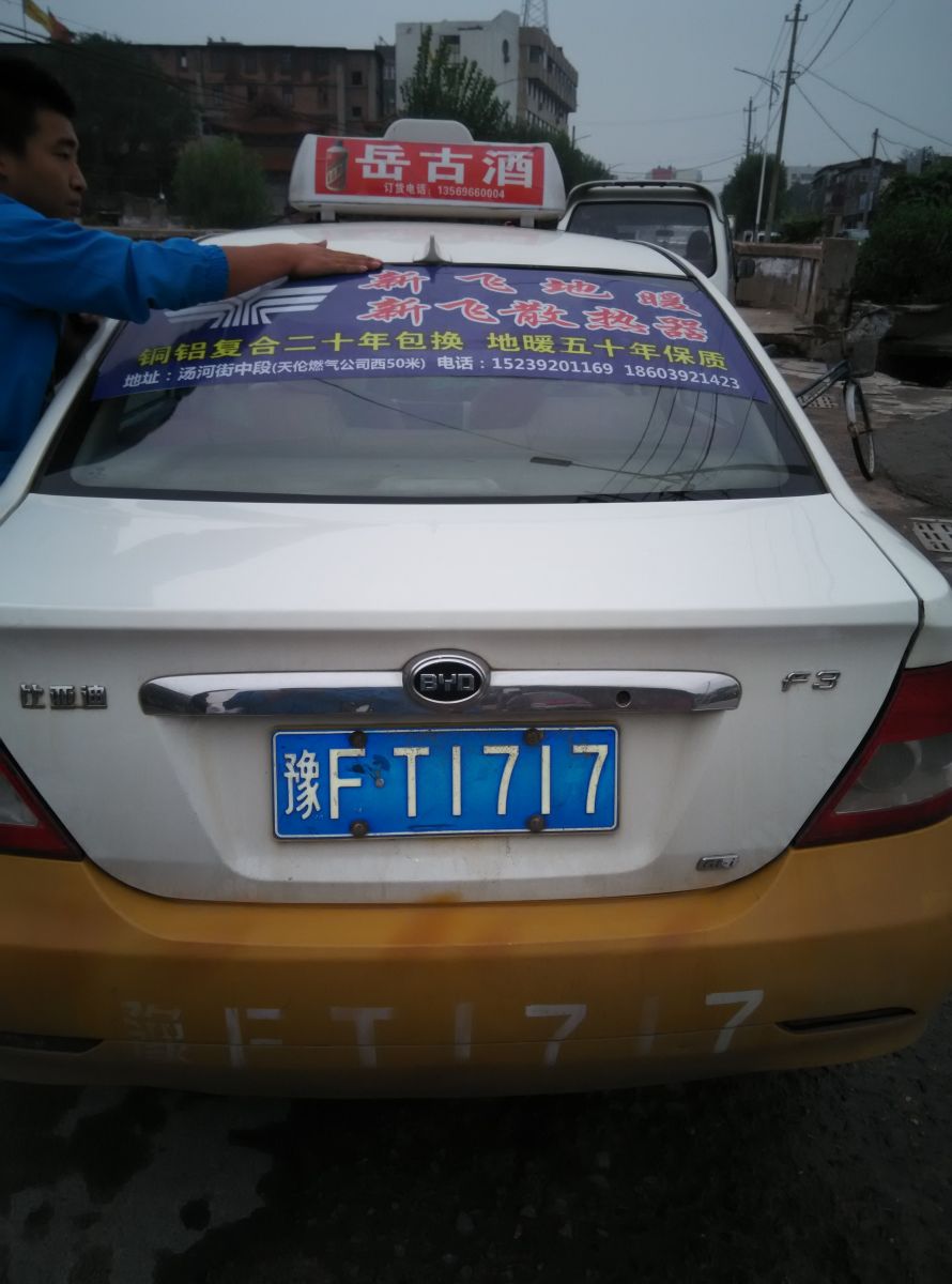 為響應新鄉市新飛散熱器有限公司十一優惠政策,鶴壁代理商王經理在全市舉行團購簽購會,買新飛散熱器抽新飛冰箱大獎,氣氛熱烈,轟動全城!為配合公司宣傳,特做百輛出租車廣告。